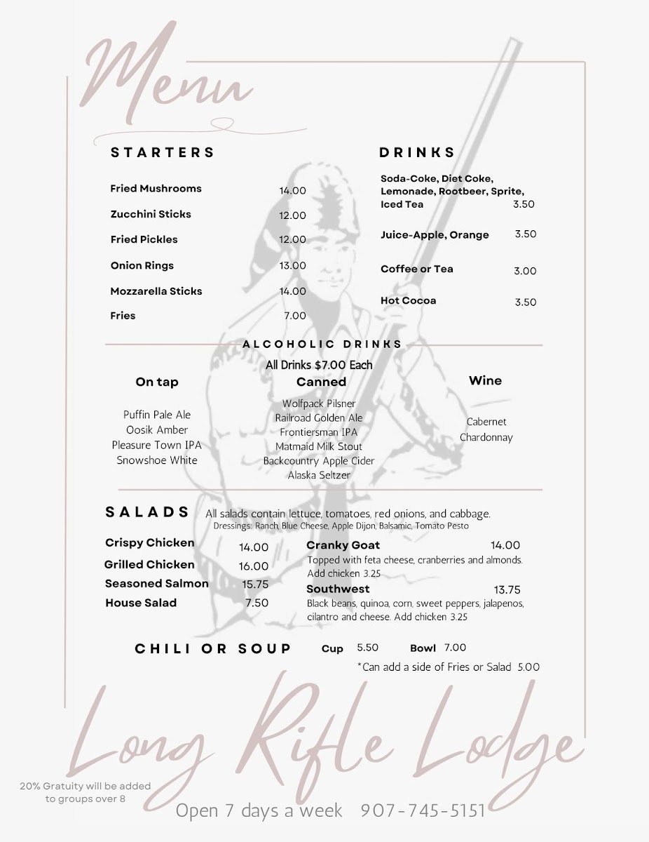 Welcome to Long Rifle Lodge, a hidden gem nestled at 31406 Glenn Hwy, Chickaloon, AK. This cozy lodge offers stunning views of the valley and glacier, perfect for a dining experience that delights all senses.
